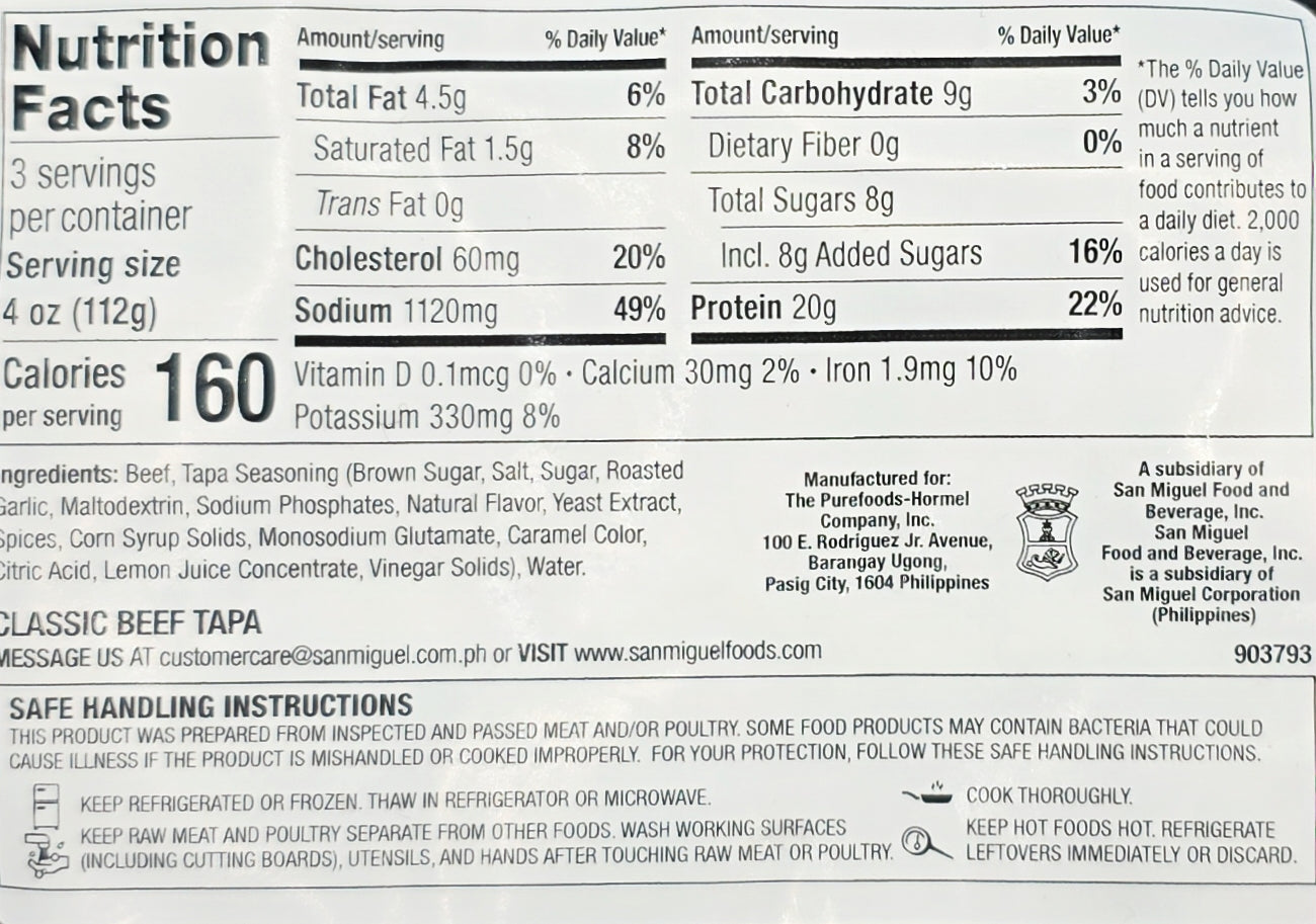 San Miguel Purefoods Classic Beef Tapa - 12oz