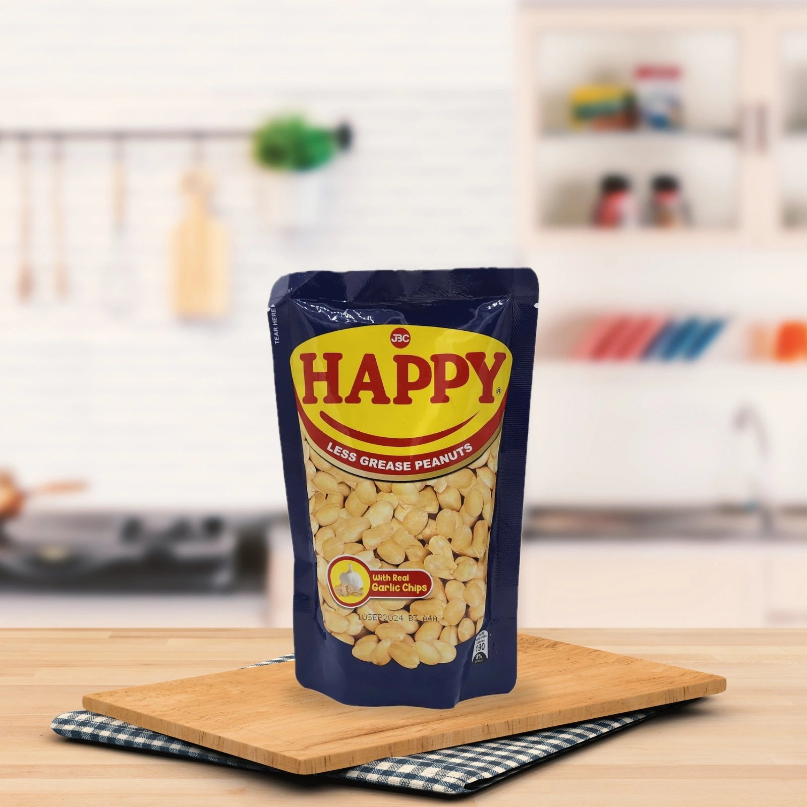 JBC Happy Garlic Peanut offers a convenient and hygienic stand-up pouch packed with imported, greaseless peanuts of high quality and delicious ORIGINAL GARLIC flavor. With its affordable price and uniquely Filipino taste, it has become the most popular peanut brand in the Philippines.